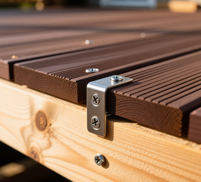 • Решение: Использование специальных террасных саморезов с фрезой на конце (для сверления без засверливания) и уменьшенной головкой (потайная голова), которая утапливается заподлицо с поверхностью.